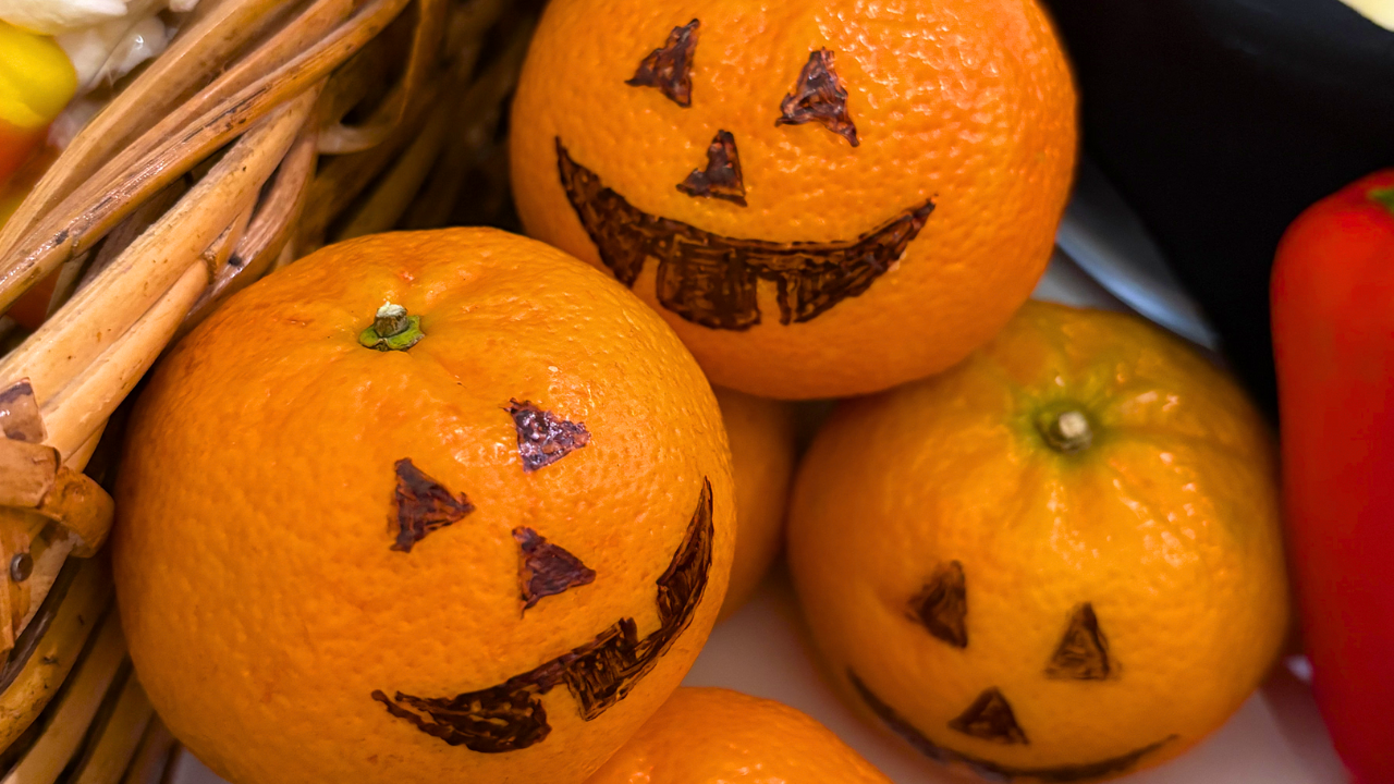 The Easiest Halloween Snack: Mandarin Orange Jack-O'-Lanterns